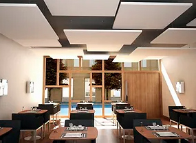 Os painéis acústicos no teto ou na parede aliam alta performance, beleza e leveza aos ambientes, absorvendo a reverberação em excesso, reflexões agudas e proporcionando um ambiente muito mais agradavel.